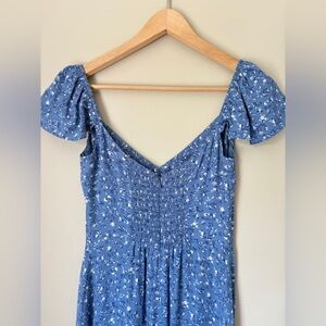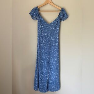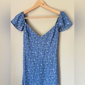 Reformation Baxley Midi Short Sleeve Dress in Eve Blue Floral | US 0 UK 4