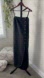 Elegant black maxi dress. Features button-down front. Adjustable spaghetti straps and tie strings at the back.