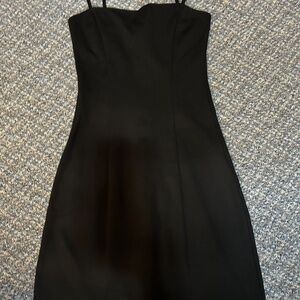 Elegant black mini dress. Spaghetti straps. Perfect for evening wear.