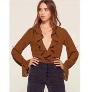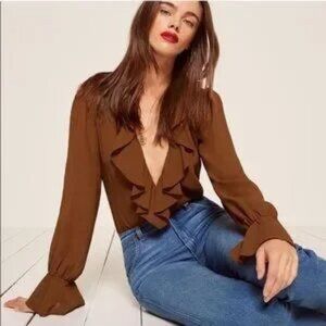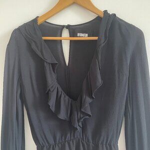 Reformation - Black Plunge V-Neck Penny Ruffle Bodysuit