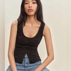 Reformation Black Ruched Button-Front Tank