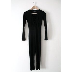 Reformation Chrissi Jumpsuit / Size 2 / Black Lace-Up Fitted Ribbed