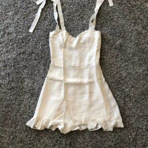 Somebody's fancy. This is a mini length dress with a sweetheart neckline, ruffle edged hem, and strap ties. The Christine is fitted throughout the bodice and skirt.
