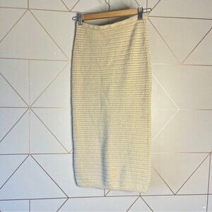 Reformation Cotton Crochet Midi Skirt in excellent pre worn condition. This skirt is crafted from organically grown cotton for a soft, breathable feel. The open-knit texture and neutral cream tone create a timeless, feminine look that’s perfect for any season. Pair it with a fitted tank or blouse for an elevated, eco-conscious style. Please see all photos.