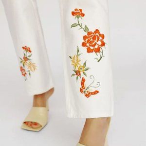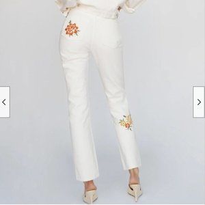Reformation Cynthia High Rise Straight Floral Embroidered Jeans