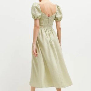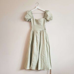 An adorable sage green puff sleeve dress. This colour is no longer in production and it is difficult to find.