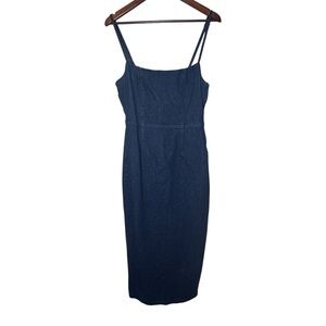 We're daydreaming about the Delphinia, a cool classic that can take you from summer to winter and day to night. A scoop neckline, fitted silhouette, and sultry back slit give this dress a little verve, while adjustable straps and super-stretch denim provide a comfort that's irresistible.