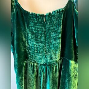Designer, velvet, party, cocktail dress, soft, adjustable straps, stretch, smocking, silk, emerald.