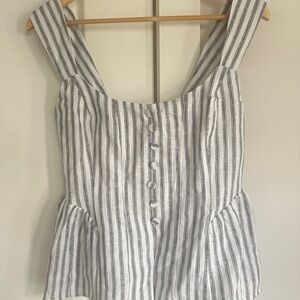 Reformation Evie Linen Top in Antibes Stripe Blue White Stripes | US 0 UK 4