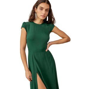 Not too mini or maxi. This is a midi length dress with a high slit, a back cut out, and cap sleeves. The Gavin is fitted in the bodice and waist with a relaxed fitting skirt. It gives you a pretty good balance of comfort and shape.