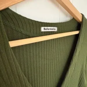 Reformation Gellar Ribbed Button V-Neck