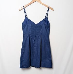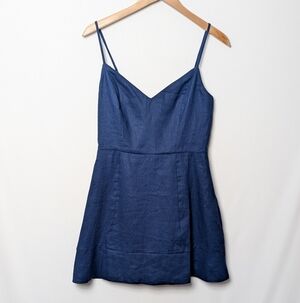 Reformation Holt Linen Dress Danube Navy Blue Mini Size 6