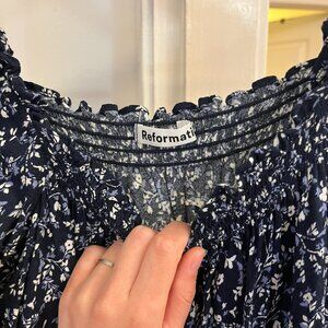 Blue floral mini dress from Reformation. Worn a couple of times for a wedding but in perfect condition. I'm 5'4" and it comes to mid thigh on me.