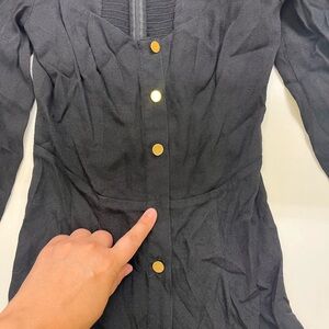 Middle button is missing on size 0. It looks intentional - like the dress has a black waist - see photo.