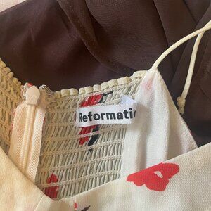Never worn Reformation dress in a discontinued red and blue flower print. (Product photo to show fit)
