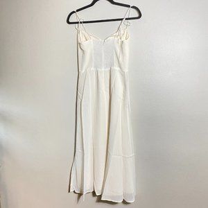 Somebody's fancy. The Juliette is slim fitting throughout the bodice with a relaxed skirt. This midi length dress has adjustable tie straps so you can fit it to your liking. There's also a side slit on the skirt to give your legs some breathing room. This dress runs slightly small.