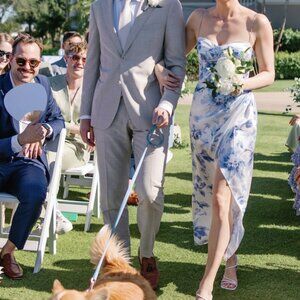 Worn once as a bridesmaid and dry cleaned.