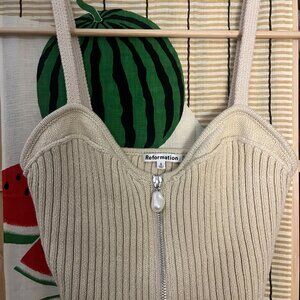 Romance alert. Shop the Presley Sweater Tank from Reformation, a sweater tank with a sweetheart neckline, zip front, and pearl detailing on the zipper. Never worn although without a tag.