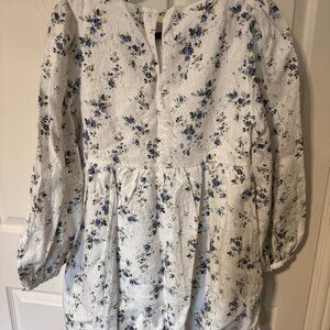 Shop the Ramone Linen Dress from Reformation, a long sleeve, mini dress with a crew neckline, relaxed fit, and puffed sleeves. In excellent condition!! High quality linen.