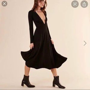 Reformation Reyes Dress Black Jerse. Deep V neck in front, 90% Tencel, 10% Spandex.