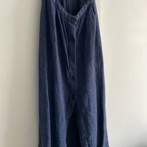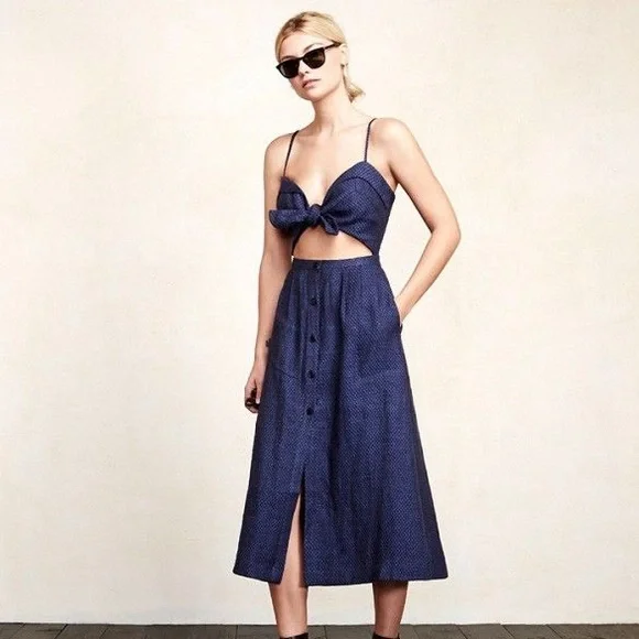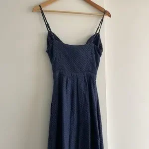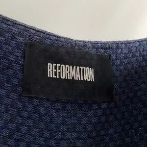 Blue & black textured linen midi dress from Reformation. Size 4. Has pockets! Adjustable straps.