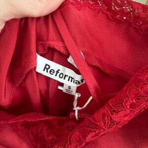 Reformation silk dress, Aara slip dress, halter lace dress, Sundried Tomato red, wedding guest dress, special occasion dress, boho chic silk, romantic slip dress, BNWT Reformation