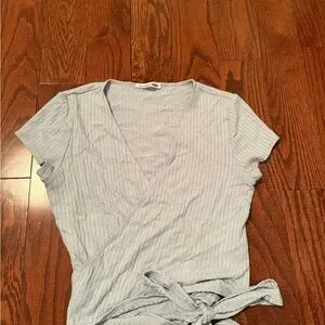 Reformation Soft Blue Ribbed Wrap Tee