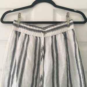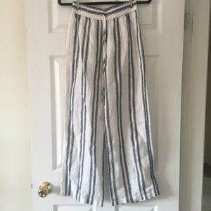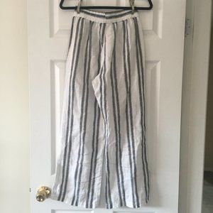 This item is in excellent condition with only light signs of wear. For reference, I am 169 cm and wear a US 24 in jeans. These pants fit me loose on the leg and hit my at my ankle. It is slightly see through, so I like to wear nude spandex underneath.