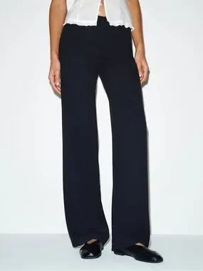 High-rise wide-leg pants from Reformation. Smooth, tailored silhouette. Clean front with minimal detailing. Versatile black color for day or night. Comfortable, flowy drape.