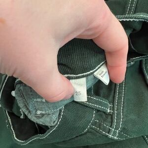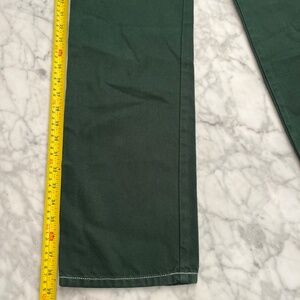 Reformation's 'Cowboy' jeans are cut from emerald denim with white contrast stitching. Sitting high on the waist, this pair has a classic five-pocket construction and straight legs. Complete the look with western boots and a tucked-in tank. Beautiful "Cowboy High Rise Straight" jeans in a deep green with a contrast stitching in white (called "Emerald"). High rise. Straight leg silhouette. Fitted at the waist and hips but relaxed leg. Five pocket construction. Belt loops. Front zip closure. Contrast stitching. Unlined, no sheerness. Midweight denim fabric with no stretch.