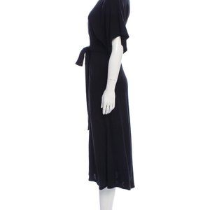 Never worn black Reformation deep V midi dress with short cape sleeves, plunging neckline, dual pockets at side and sash tie at waist, size S
