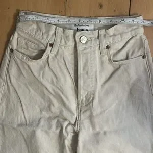 Reformation Cynthia high rise straight jeans, cream colour, 100% cotton no stretch, button fly, size 24, great condition