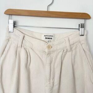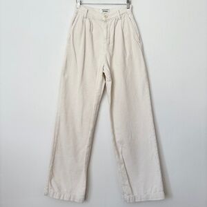The Reformation Montauk Pleated Corduroy Pants are high-rise, wide-leg trousers with front pleats and a tailored waist for a polished yet relaxed fit. Made from 100% organic cotton corduroy.