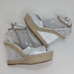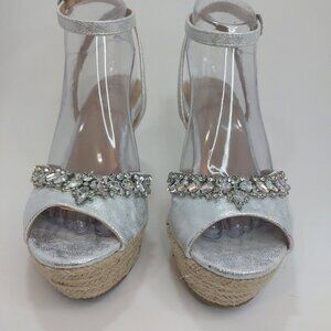 Refresh Beverly Silver Rhinestone Wedges Women's Size 7.5