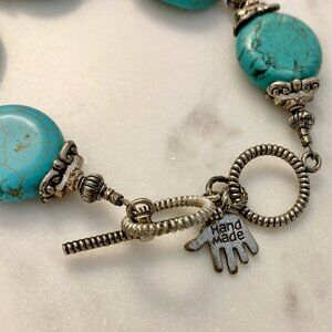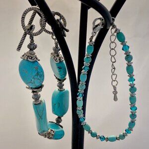 Two beautiful turquoise bracelets with a mix of semi-precious, plastic, and metal beads.