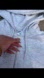 Stylish light gray hoodie with zip closure. Features a cozy hood.