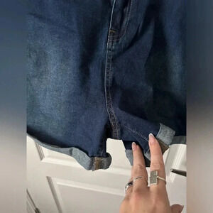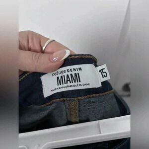 Refuge Denim | High-Waisted Dark Wash Stretchy Miami Denim Shorts | Size 15