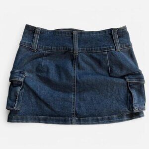 •dark blue wash denim URBAN PLANET REFUGE stretchy cargo utility pocket mini skirt
