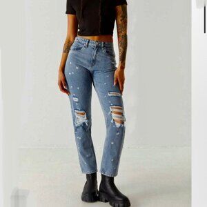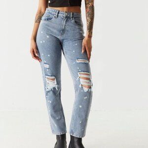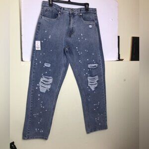 Refuge NEW Boyfriend Mid Rise Straight Leg Distressed Jeans Zip Medium Blue 9