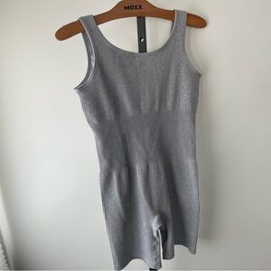 Refuge Ribbed Athletic Unitard Bike Shorts Tank Romper One Piece Grey Medium