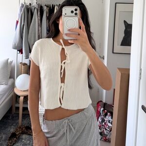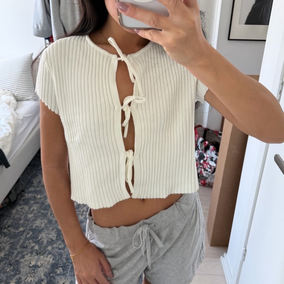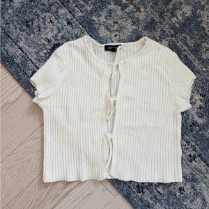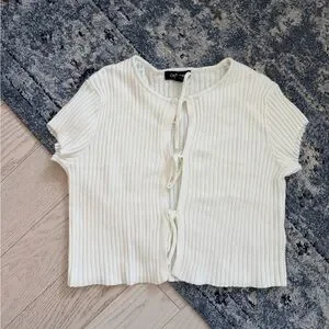 - good condition - colour is off white - stretchy - can fit size small or medium - pit to pit 16.5” - length 17.5”