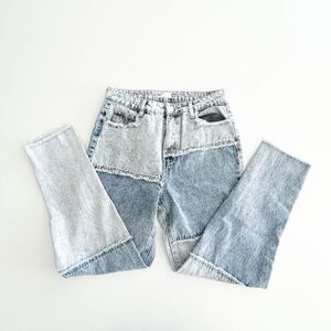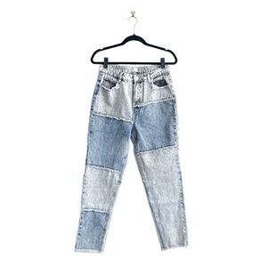 Refuge Denim Womens Mom Jeans Patchwork Two Tone Light Blue Wash Size 7