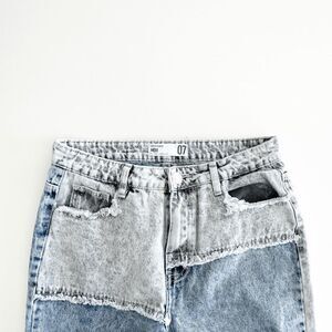 Refuge Denim Womens Mom Jeans Patchwork Two Tone Light Blue Wash Size 7