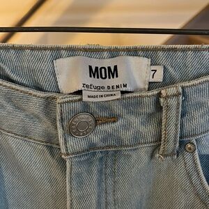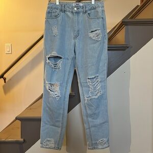 Distressed mom jeans that have barely been worn. These could be made into cutoffs easily!