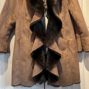 Regal Brown Faux Fur Faux Suede Ruffle Front Coat Size M NWOT