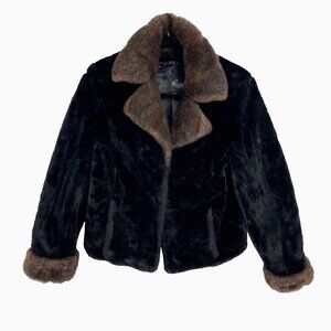 Regal Faux Fur Black and Brown Fuzzy Short Jacket Womens Size XS