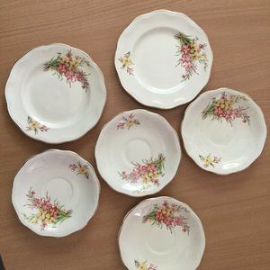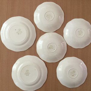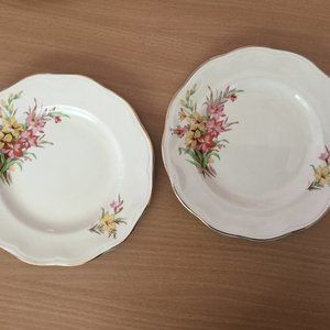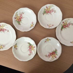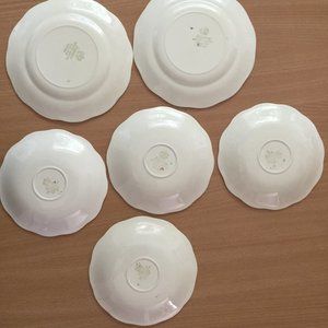 Saucer plates are 14cm wide, and 2cm tall, the bread plates are 16.7cm wide, and 1.5cm tall