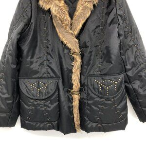 Regent Park Black Faux Fur Trim Thick Parka Jacket size L
