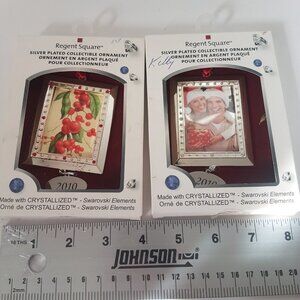 2010 Christmas Ornament Lot of 2 Picture Frames Silverplate Swarowski Crystals