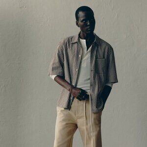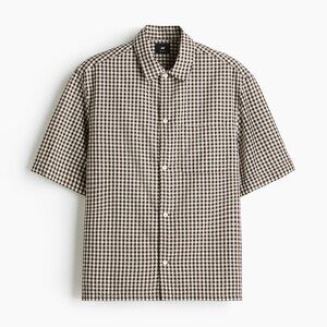 Regular-fit, short-sleeved shirt in a woven cotton blend with a comfortable, classic silhouette. Turn-down collar, buttons without placket, an open chest pocket, and a yoke at back. Straight-cut hem with slit at sides.